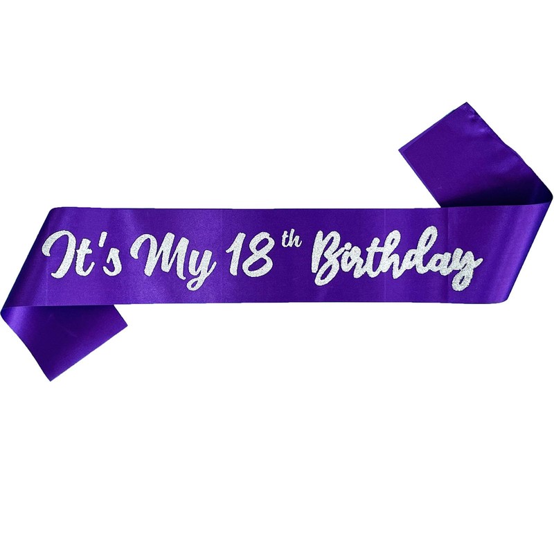 Purple It's My 18th Birthday Sash Funny 18th Birthday Sash 18th Birthday Gifts for Girls with Glitter Letter Silver