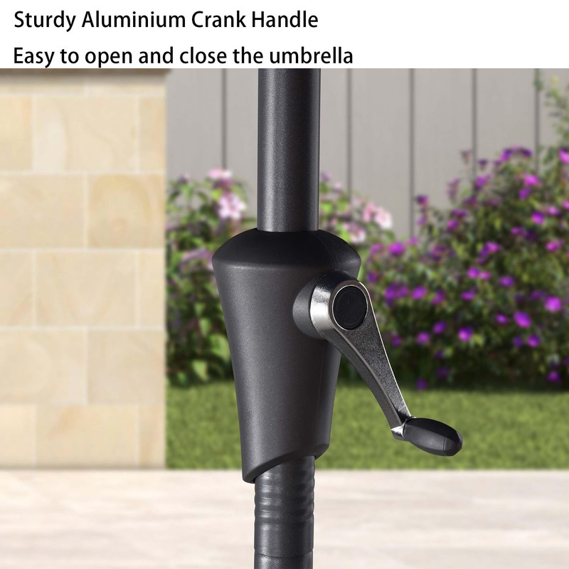 - Crank Design: The simple crank lifting system is equipped, enabling the convenient and rapid opening and closing of the patio umbrella. Additionally, an advanced chain lock pin is provided, ensuring the stability of the umbrella even in windy conditions