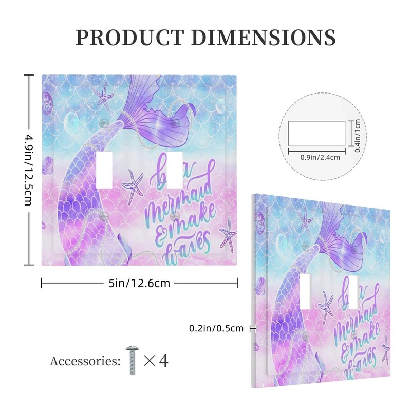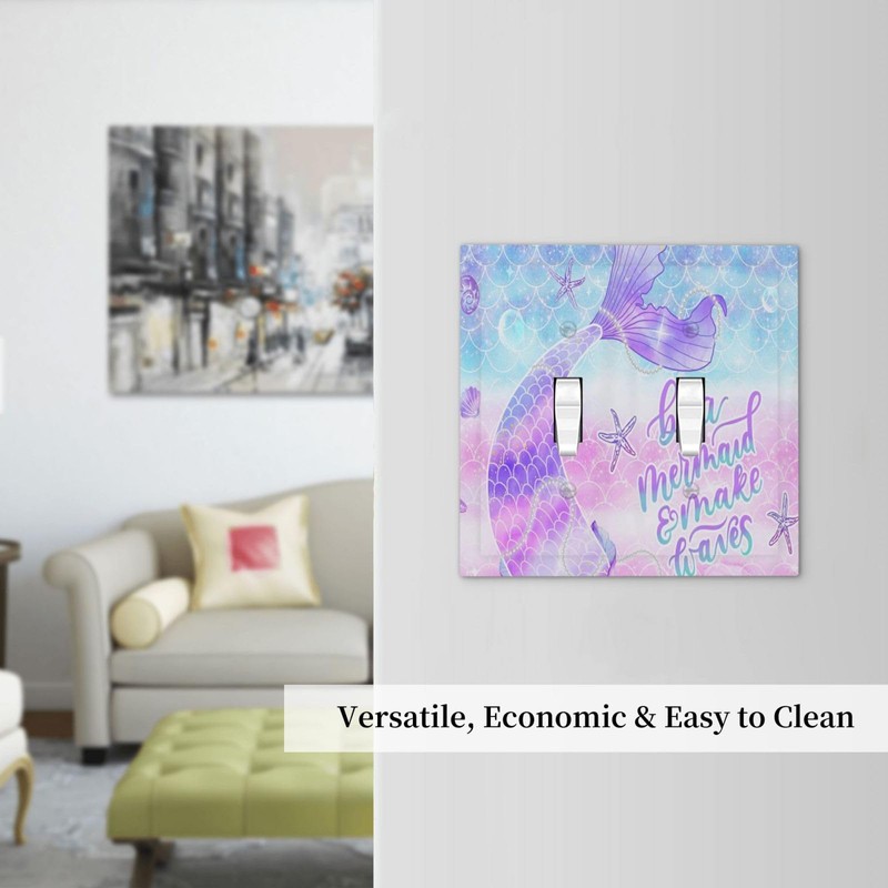 Purple Mermaid Tail Scales 2 Gang Double Toggle Outlet Light Switch Cover Wall Plate Electrical Faceplate Decorative Dual Device Switchplate