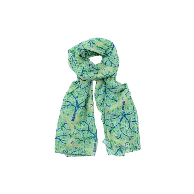 - Lovely large green coloured scarf / wrap with a pretty tree pattern. Excellent quality, long, wide, lightweight and super soft, it drapes and falls beautifully.
