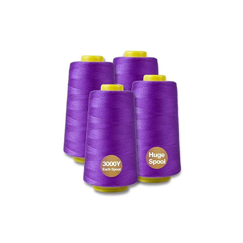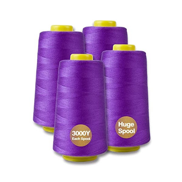 Purple Serger Thread All-Purpose for Sewing, Polyester, 4 Cones of 3000 Yards Each Spool Thread for Sewing Machine