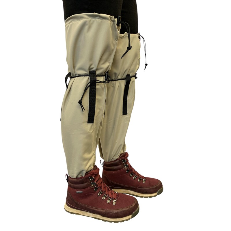 Purple Turtle Leech Socks should be worn like a second pair of socks inside your boots and they pull right up over your trousers and above your knees. They can then be secured with a toggle and elastic draw cord both above and below your knees, thereby creating a continuous leech proof barrier.