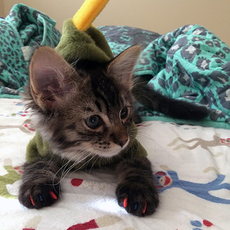 Developed by a veterinarian, Purrdy Paws vinyl nail caps glue on to your cat's nails. This amazing American Made product blunts your kittys' nails to protect against problem scratching such as: