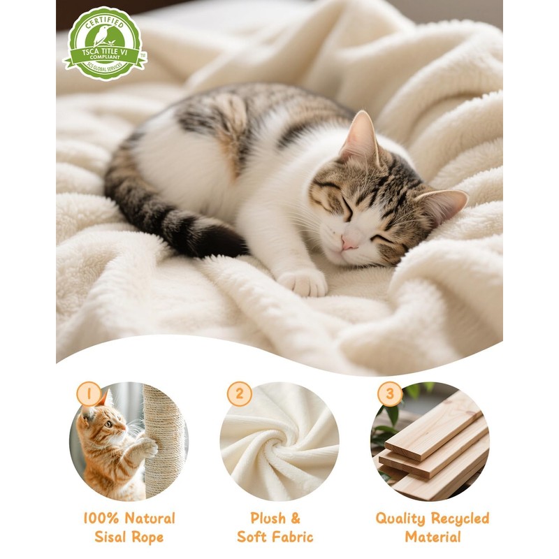 - SISAL-COVERED SCRATCHING POSTS AND RAMP: Cats naturally love scratching and stretching. PURRLATO aims to integrated sisal-wrapped posts throughout the structure. This tree provides ideal scratching areas to satisfy natural instincts. Features multiple sisal-covered posts and an additional scratching ramp to protect your furniture and keep their little claws healthy.