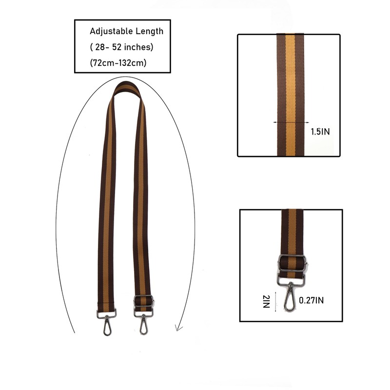 - Adjustable - Width: 1.5 inches (3.8 cm) for comfortable and relaxed shoulders. Shoulder strap length is 52 inches (adjustable range from 28 to 52 inches) .it is long enough to wear on the shoulder or cross body