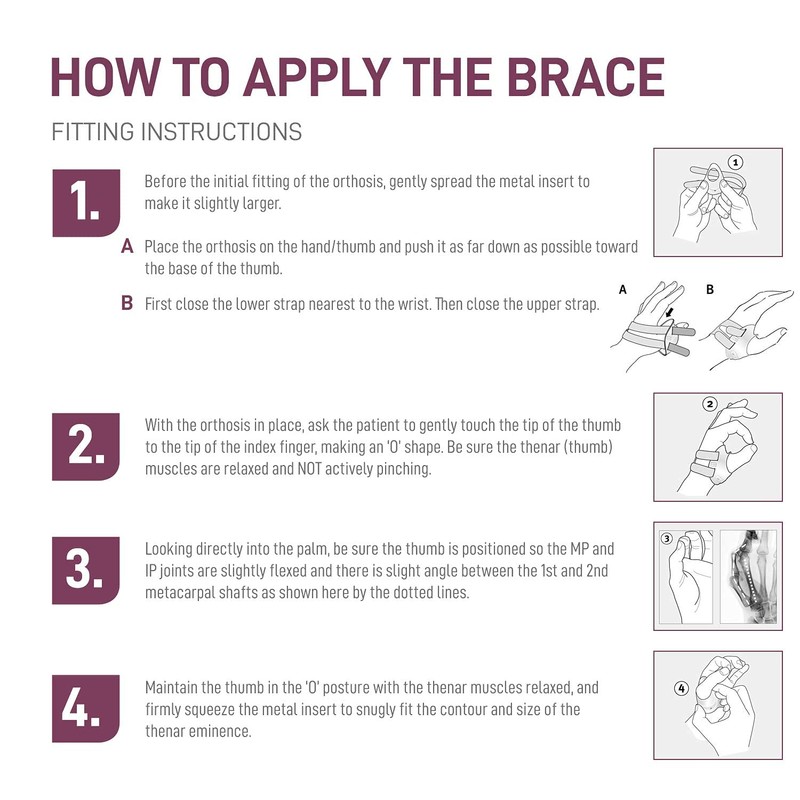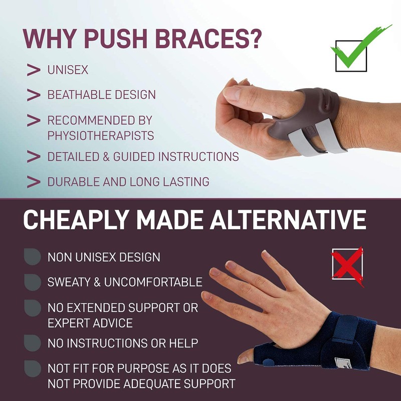 The push ortho thumb orthosis CMC is designed to stabilise the thumb saddle joint and position the metacarpal bone of the thumb.
