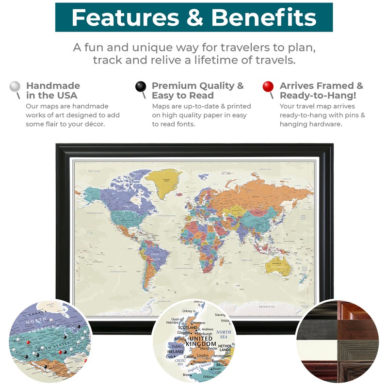 - Ready to Hang and Pin: The map arrives ready to hang and includes 150 pins, perfect for tracking every memorable location you've visited and planning those bucket list trips!