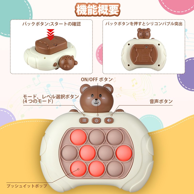 - 【TRAINS HAND AND EYE COORDINATION AND PROMOTES SENSORY DEVELOPMENT】Our new handheld toy combines push-button bubble games and electronic games! This can stimulate children's thinking skills and improve motor skills. It is also a great way to encourage learning through the game. Fun click and rhythm movements help you train reaction, hand-eye coordination, memory and logical thinking. Perfect for kids who love learning and brain games