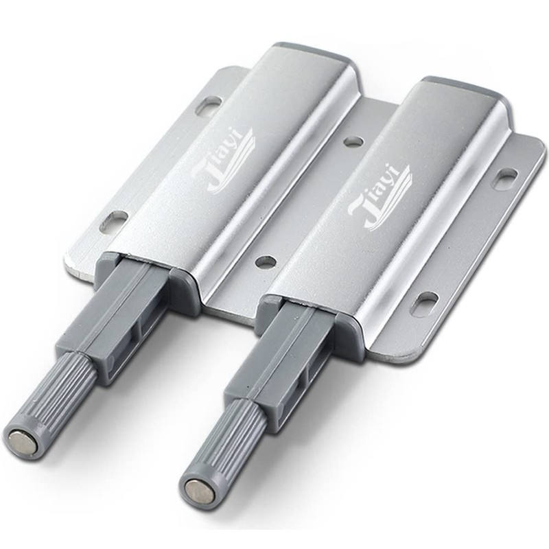 - Double Push To Open: Built-in spring loaded plunger, you can just simply press the door to latch or unlatch. Double catch design, this jiayi 1 pack magnetic push latch are equivalent to 2 pack push cabinet latch. Eliminates the need for handles or knobs. Create the clean, seamless look of no knobs. Suitable for using with hinges without self-closing feature.