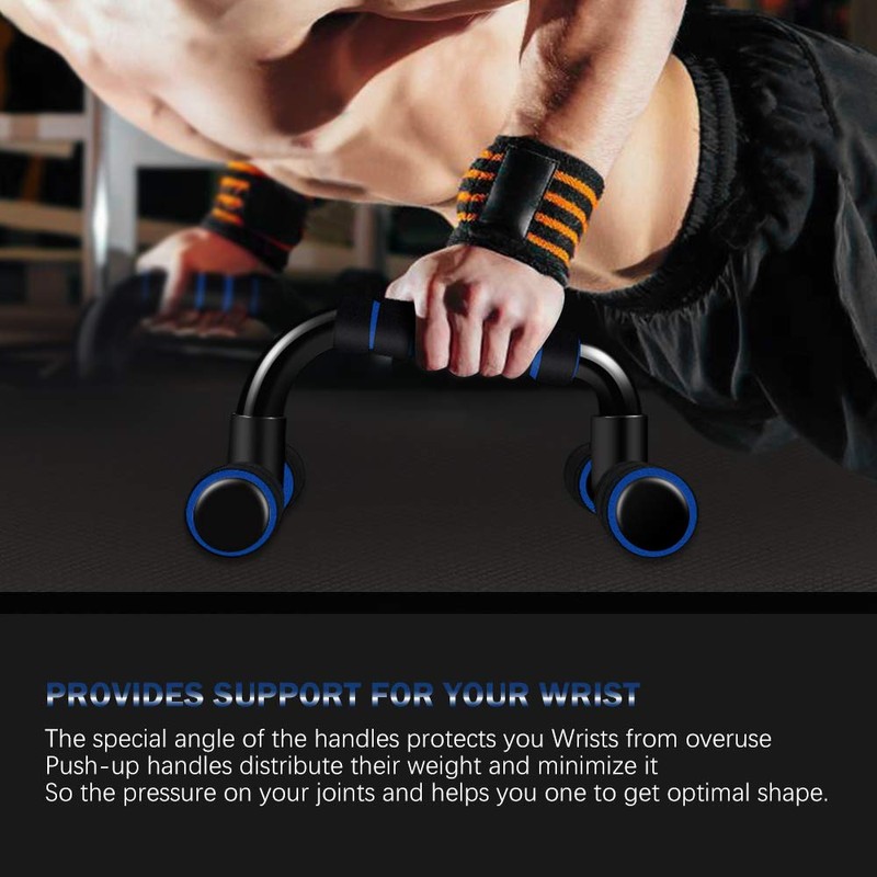 Safe design - Fitness press up bar adopting a H-shaped frame design for stablility and ergonomics, specially designed tilt angle, helps to reduce strain on your wrists.