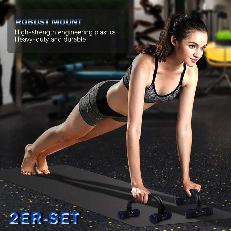 Anti-slip handle - Push up bar stands With the double corrugated high-density foam handle, the handle of this item is soft, comfortable, skid resistant and sweat- resistant.