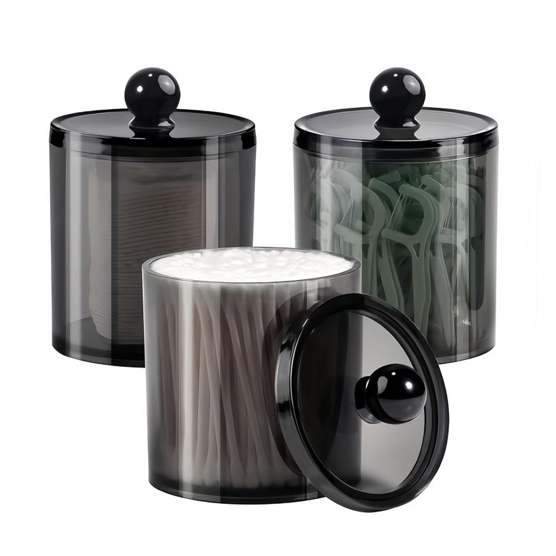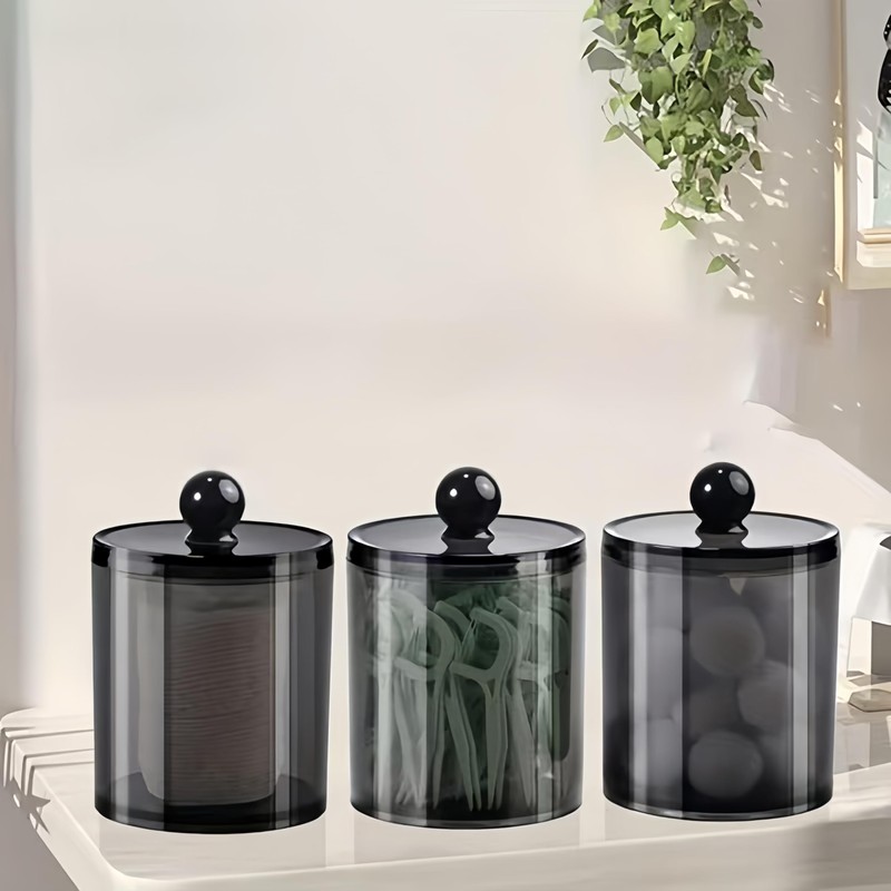 - The one-piece design of this cotton bud container in black and clear glass gives your decor a stylish touch. It has a classic and timeless look that matches any decor.