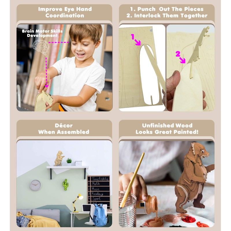 Puzzled Grizzly Bear 3D Natural Wood Puzzle