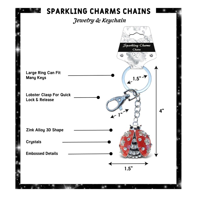 - THE LADYBUG KEYCHAIN COMES WITH UNIQUE DESIGN YOU WILL LOVE - Add a stylish touch to your backpack keychains for girls and boys with the Ladybug Keychain for purse, car key, and backpack charms. The ladybug keychains feature a 3D rhinestone ladybug with sparkly crystals that will catch everyone's attention. It has a silver key ring and a clasp to keep it secure when hanging from your backpack handbag. A perfect wallet keychain for girls and boys.
