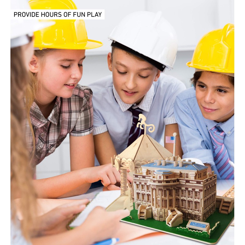 - THE WHITE HOUSE SET DIY 3D PUZZLE IS FOR ANYONE WHO LOVES PUZZLES - The White House 3 dimensional craft kit is a model to build for kids and adults who love using their brain & create something with their hands. Puzzles lovers at any age or gender will enjoy building this amazing 128 pieces wood toy kit and paint the 3d wood puzzle to make it their own. It is a great father and son 3d puzzles for boys school project as well as puzzle for girls get together and craft play time with loved ones.