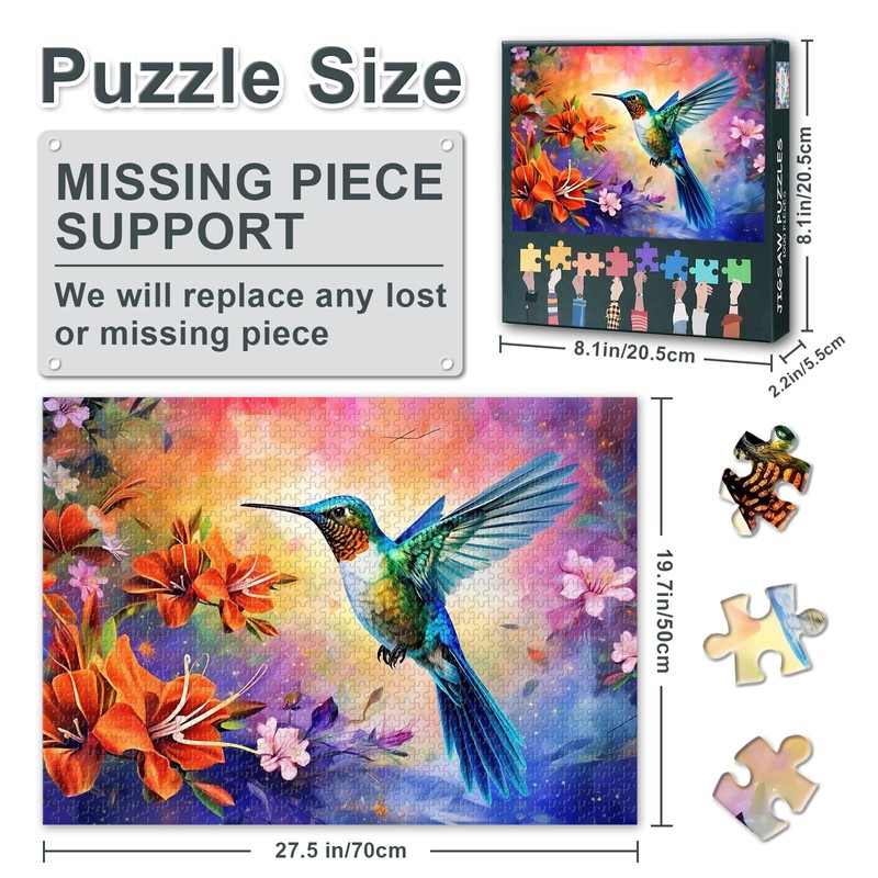 Puzzles for Adults, 1000 Pieces, Hummingbird Jigsaw Puzzles, Flower Art, 27.5 x 19.7 Inch Animals & Bloom Plant Design, Heavy Challenging Puzzle, Family Game for Men and Women