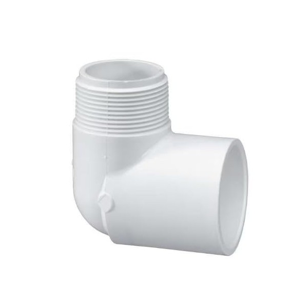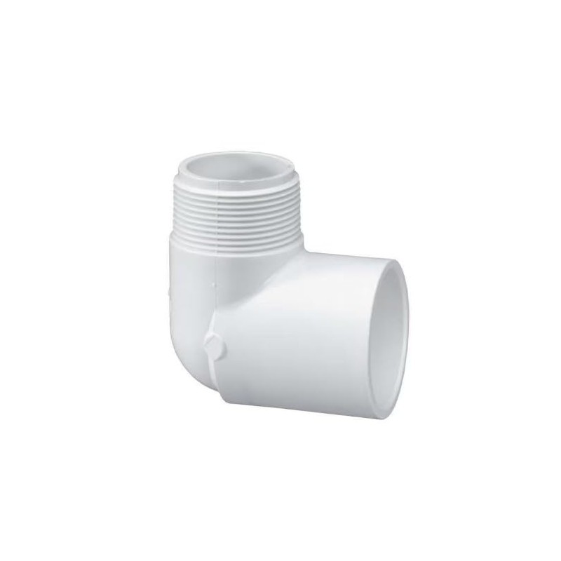PVC 90 Degree Elbow Pipe Connector – MIP Male Pipe Thread x Slip Socket (3/4"Socket x 3/4"MIP)