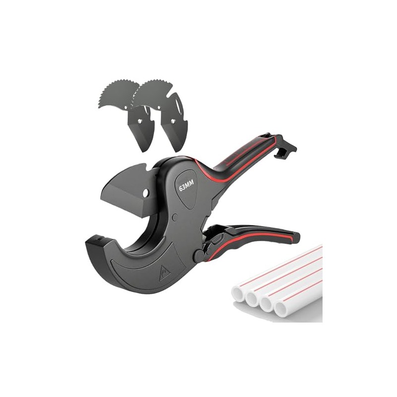 PVC Pipe Cutter 2-1/2", Heavy-Duty Aluminum Ratchet Pipe Cutter Tool 63mm, One-Hand Operation Tube Cutter with SK5 Blades for PEX/PVC/PPR/Plastic Hoses and Pipe