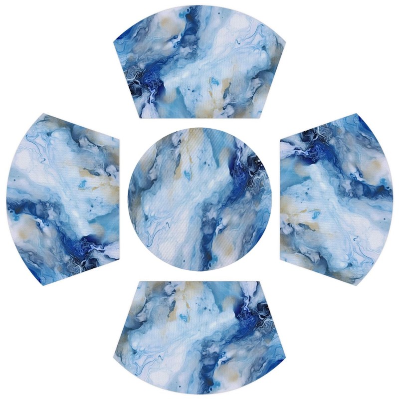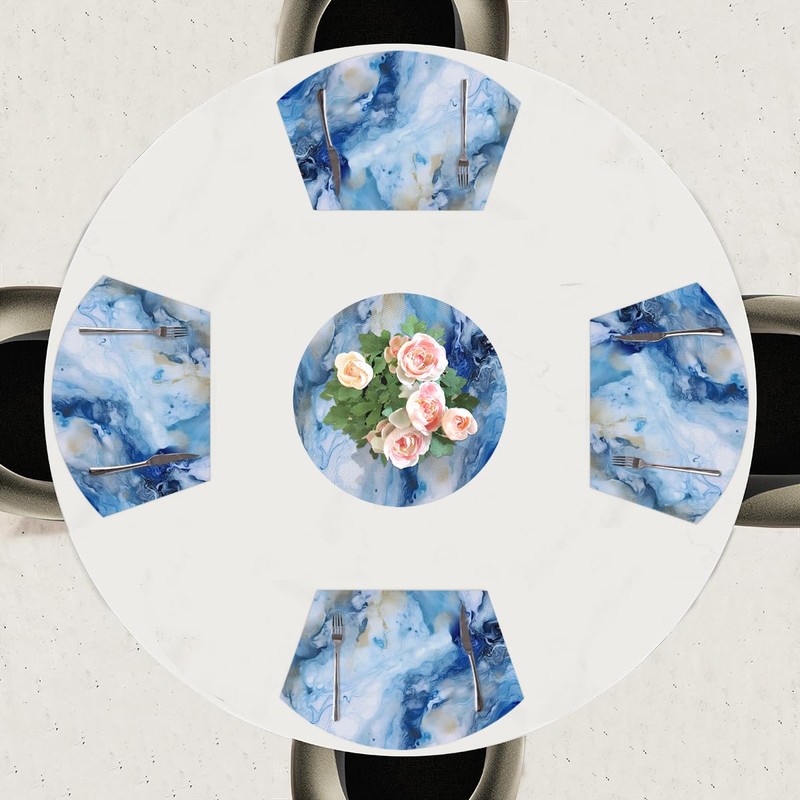 PVC Placemats for Round Table Set of 4 with Round Centerpiece Mat Blue Marble Wedge Table Mats Washable Heat Resistant Dining Table Mat for Kitchen Holiday Party