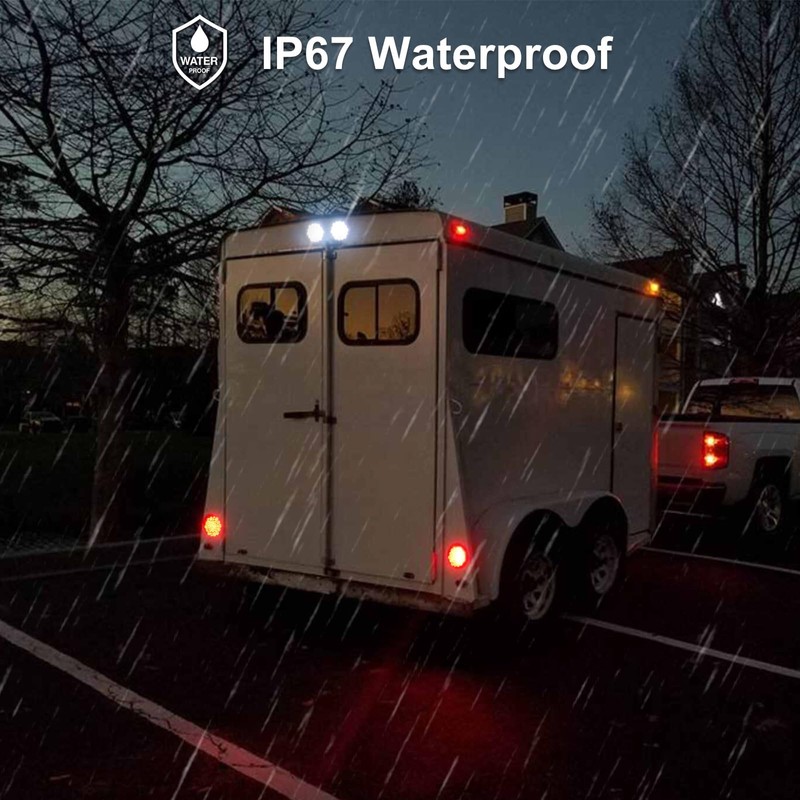 - 4 inch round led trailer lights functions: red round tail lights can be used as 4 inch stop light/turn signal light/tail light and the white light can be used as back-up lights or reverse lights; 4 inch tail light is 12 Volt DC Input and this 4" round LED stop turn tail lights is IP67 waterproof;