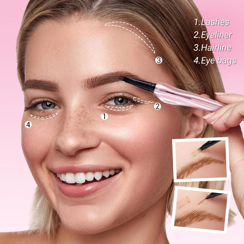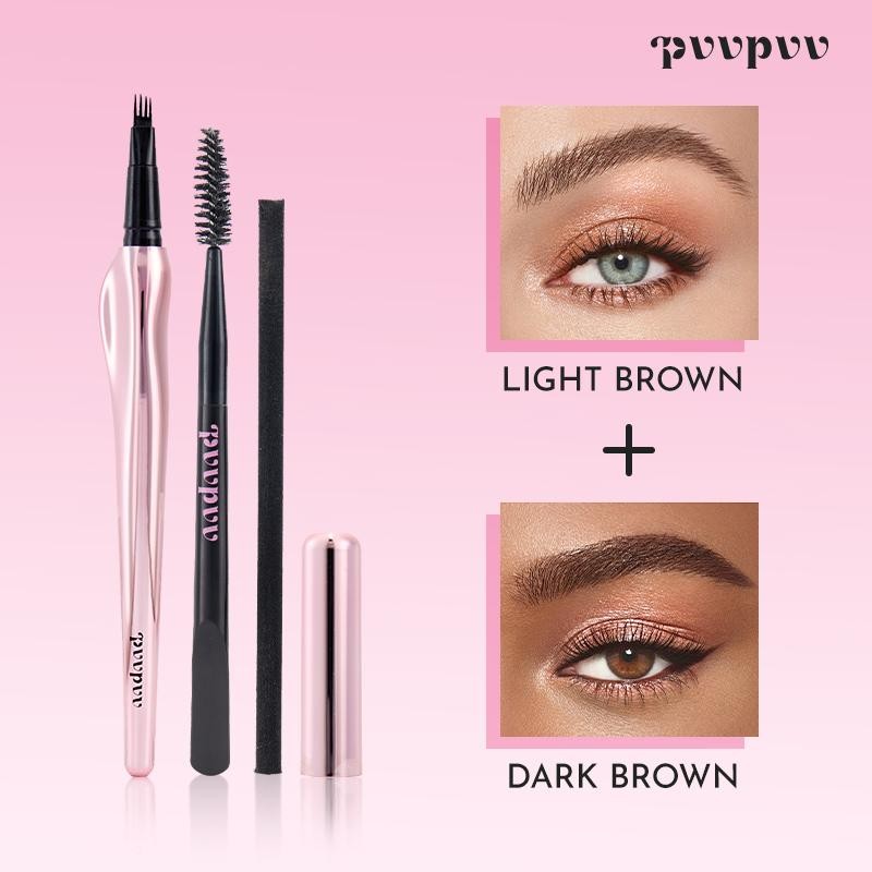 PVVPVV Upgraded Four-Pronged Liquid Eyebrow Pen, Ergonomic Design Hair-Like Eyebrow Pencil for Women with Precise Brush& Liquid Eyebrow Pencil Cleaner-Tip Create Natural Hair-Like Brows, Last All-Day - Color: LIGHT BROWN*2