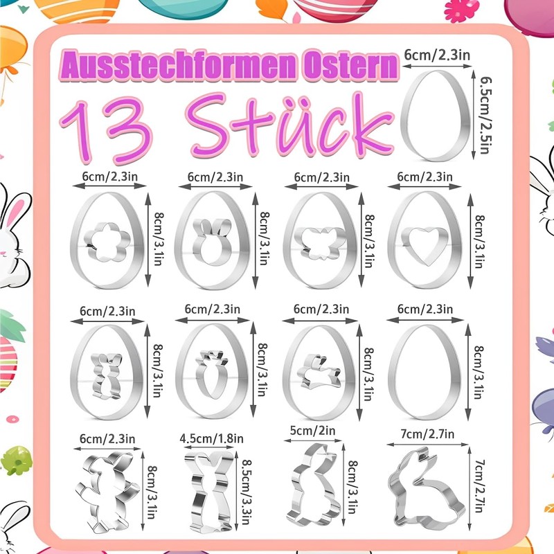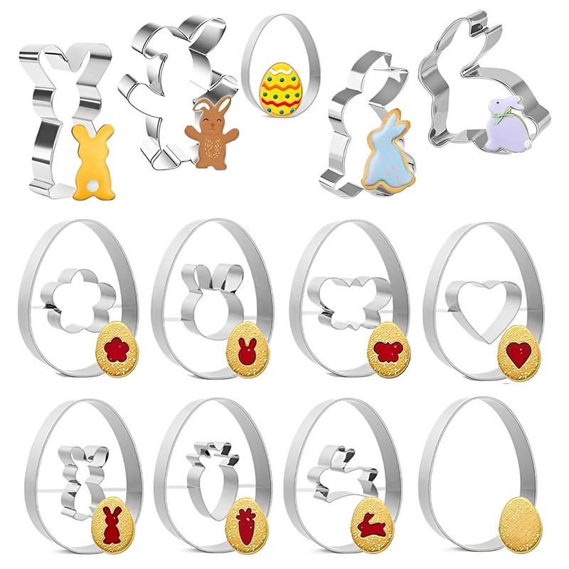 - Pstern crafts: the 3D Easter cookie cutter contains 13 different bunny egg shapes. The cute and interesting shapes will awaken your children's interest in baking biscuits or desserts and make your food more attractive