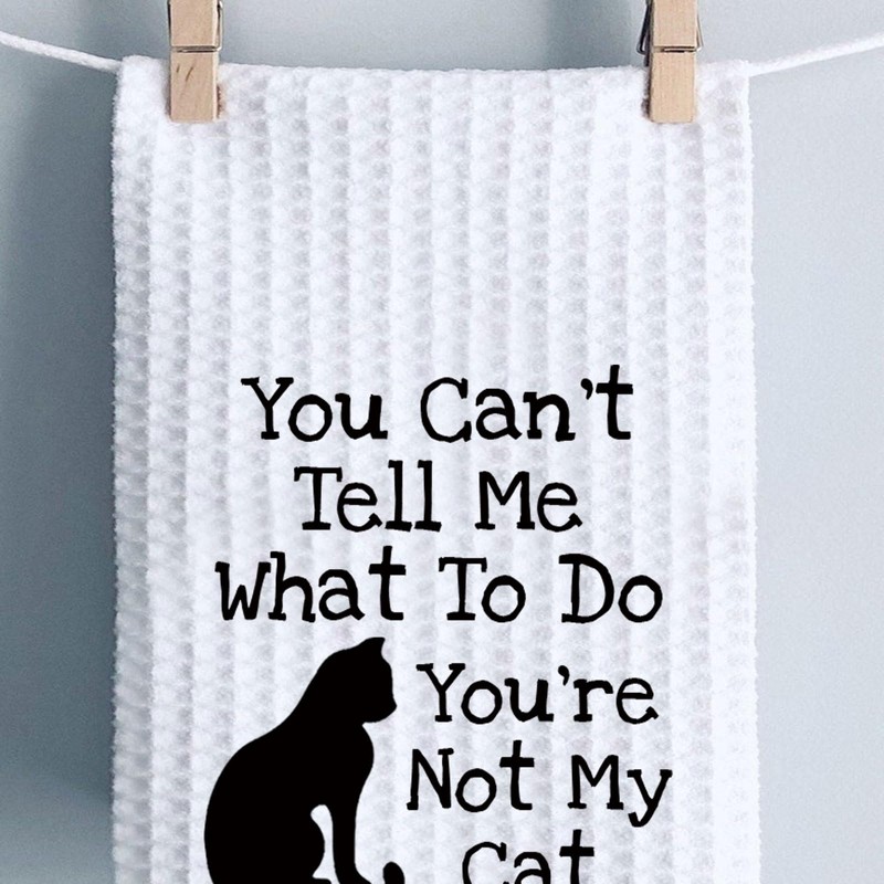 - Towel with saying:You Can't Tell Me What To Do. You're Not My Cat. This towel will make an excellent gift for a housewarming, wedding, hostess or holiday stocking stuffer as well as many other occasions.