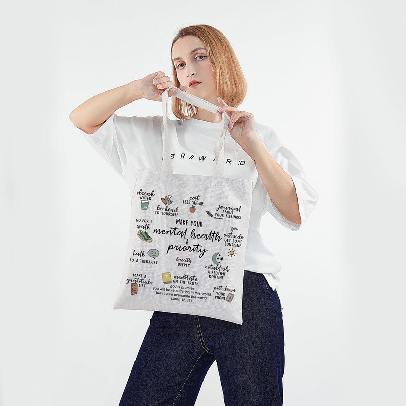 PWHAOO Mental Health Priority Tote Bag Mental Health Awareness Shoulder Bag Mental Inspirational Gift Therapist Gift, Mental Health Priority Tote, Medium