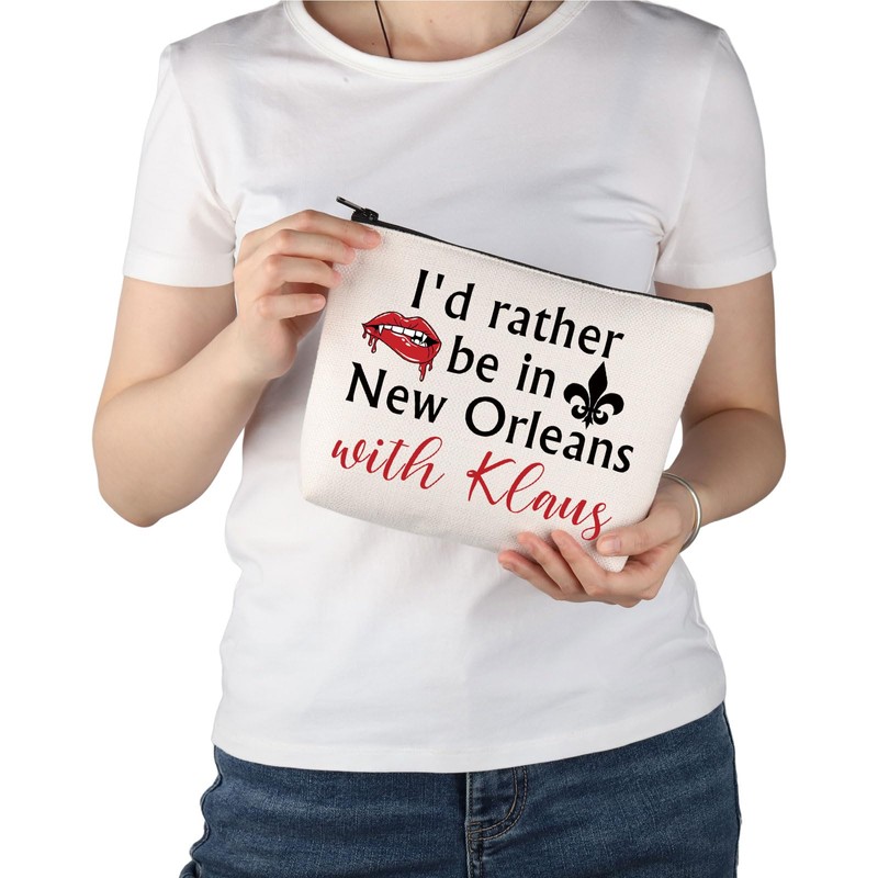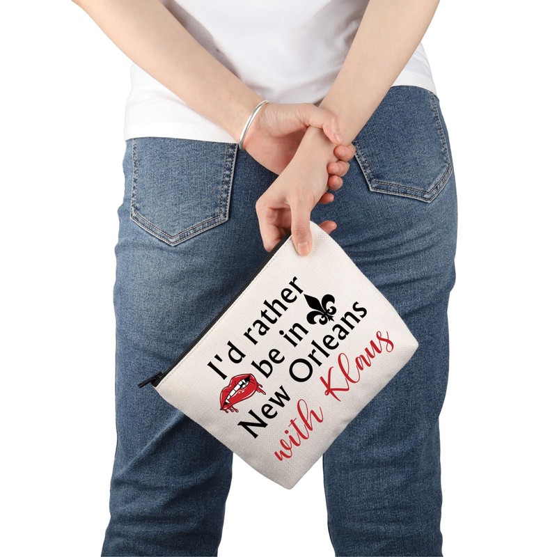 PWHAOO Originals Vampire Inspired Gift I’d Rather Be in New Orleans with Klaus Makeup Bag Klaus Mikaelson Fan Cosmetic Bag Team Klaus Gift (with Klaus C)