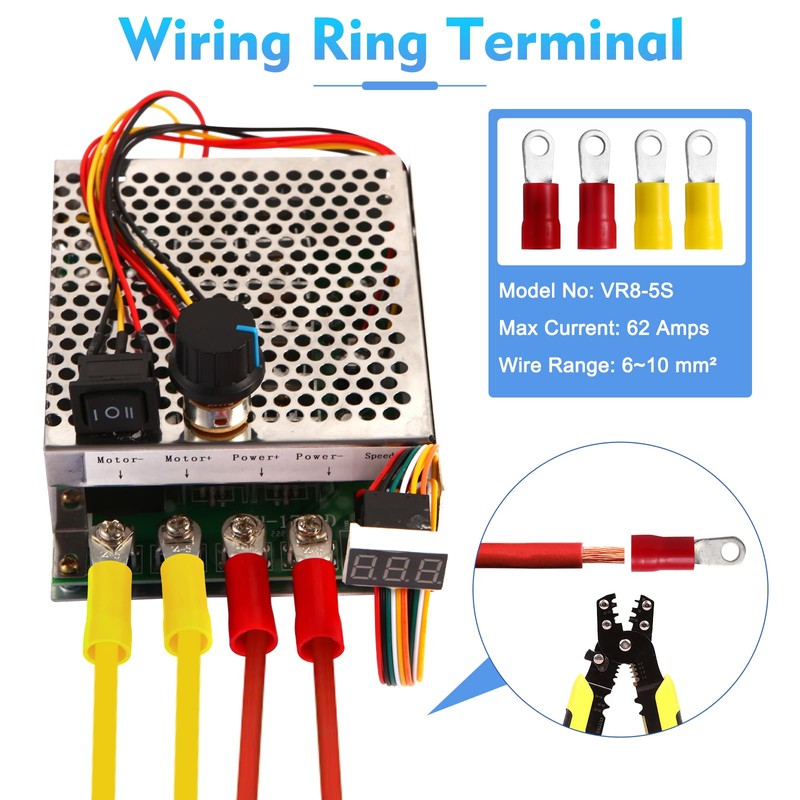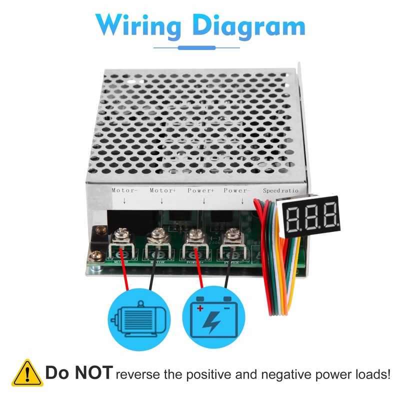 - ♕【Technical Parameter】Input voltage: DC 10-55V; Input max current: 100A; Continuous current: 60A; Speed range: 0%-100%; PWM frequency: 15KHz; Apply to: only DC Brush Motor