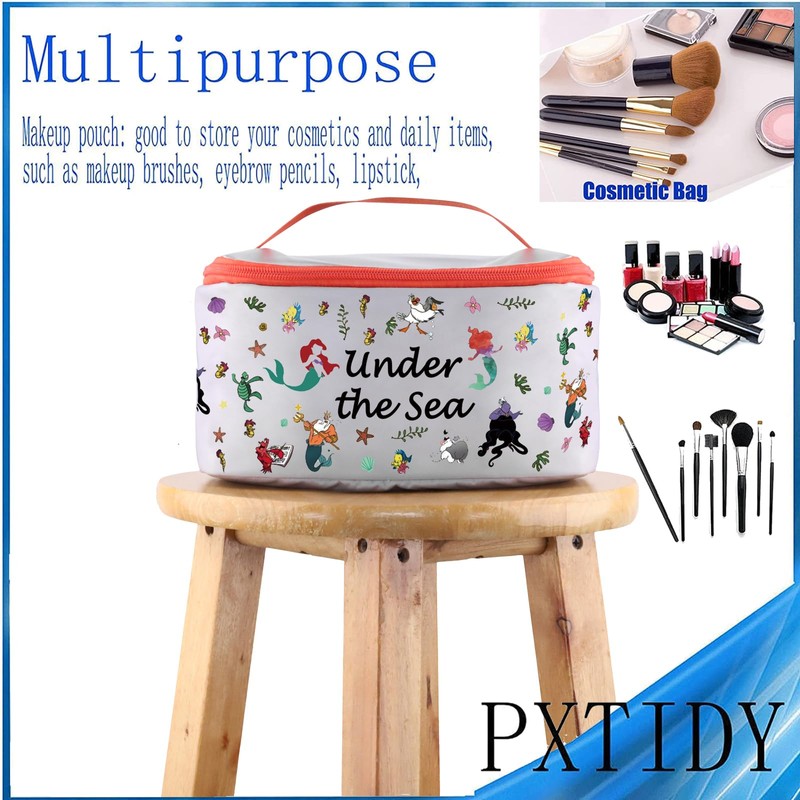 PXTIDY Mermaid Ariel Cosmetic Case Cartoon Movie Merchandise Fairy Tale Ariel Princess Makeup Organizer Bag Ariel Fans Gift