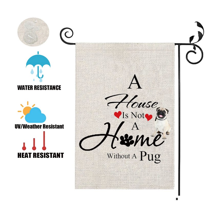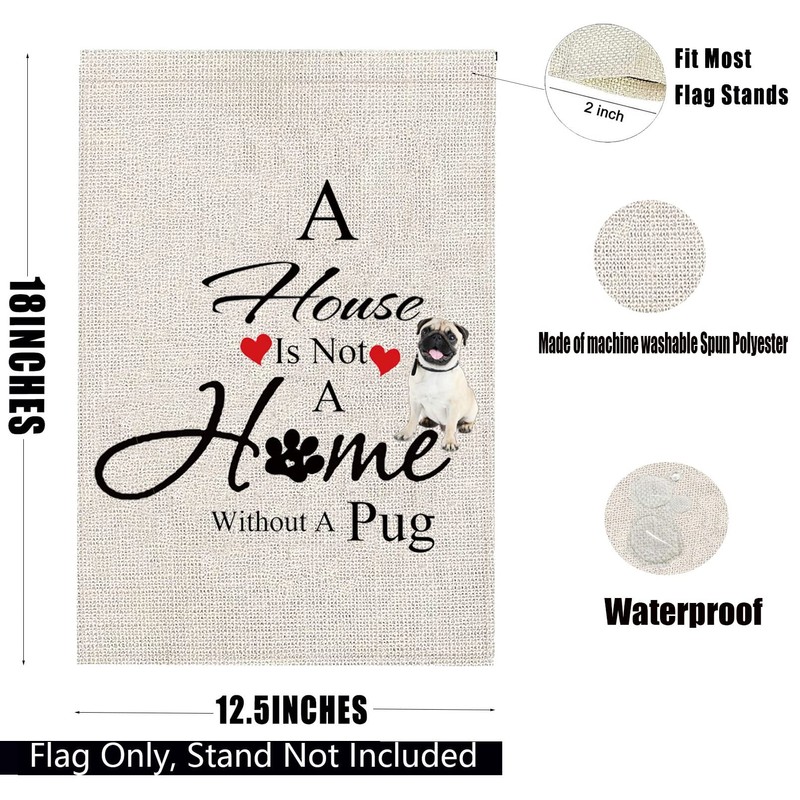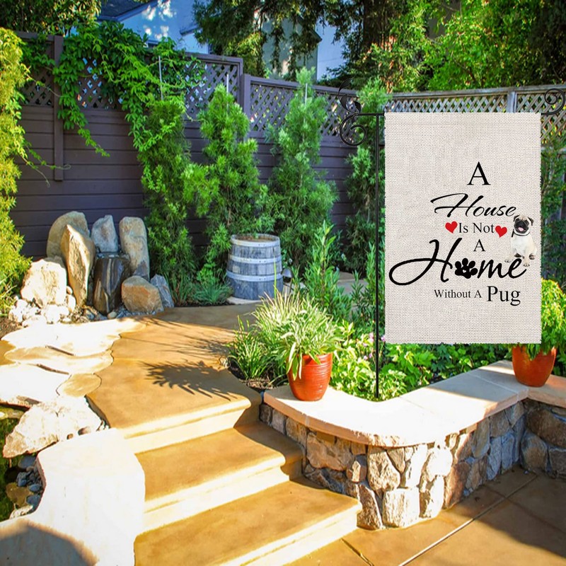 PXTIDY Pug Garden Flag A House Is Not A Home Without A Pug Lovers House Yard Flag Pug Gifts for Pug Owner Dog Lover Gifts