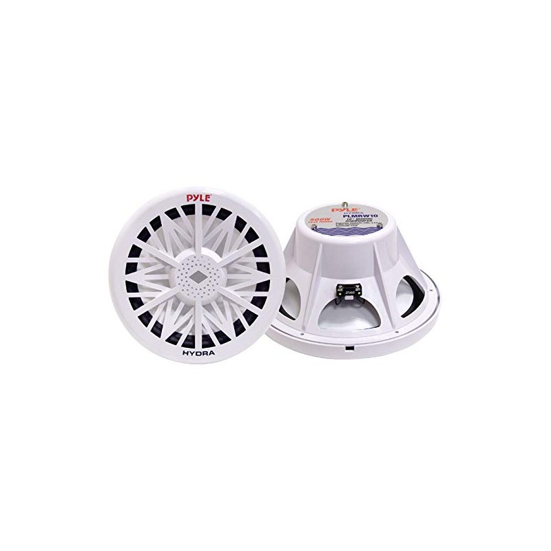 Pyle's Hydra series speakers are waterproof and designed for use in your boat, on the dock, by the pool, or simply mounted outside. They're designed with rust-proof mesh covers for protection from the elements. The 10-inch PLMRW10 subwoofer leaves 500 watts of booming low end in its wake, and is specifically designed for marine use.