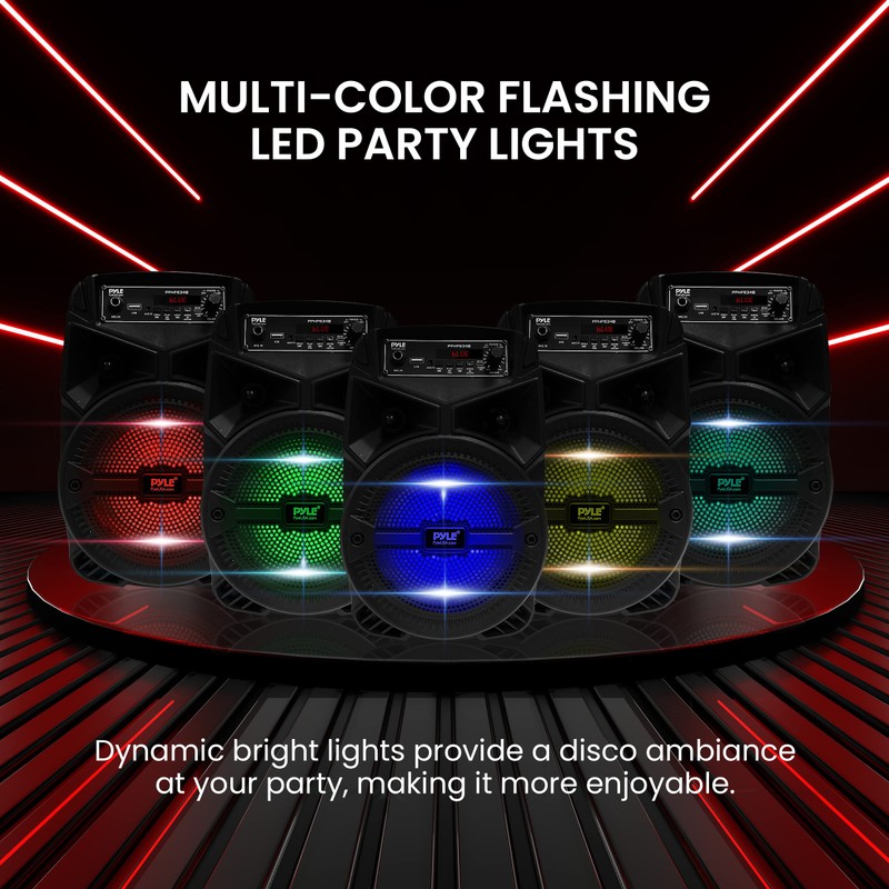 • flashing dj lights: the bluetooth party speaker with lights features multi-color flashing disco led party lights. true wireless stereo system adds life to any occasion, great for patio parties & night gatherings when colorful presence is noticeable