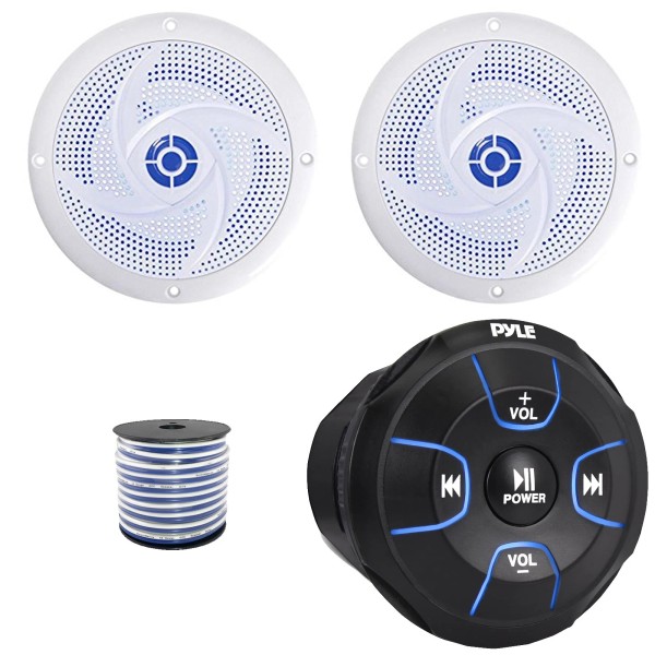 Pyle PLMRBT18 Bluetooth Marine Controller, 2x 5.25" 180W Max LED White Speakers