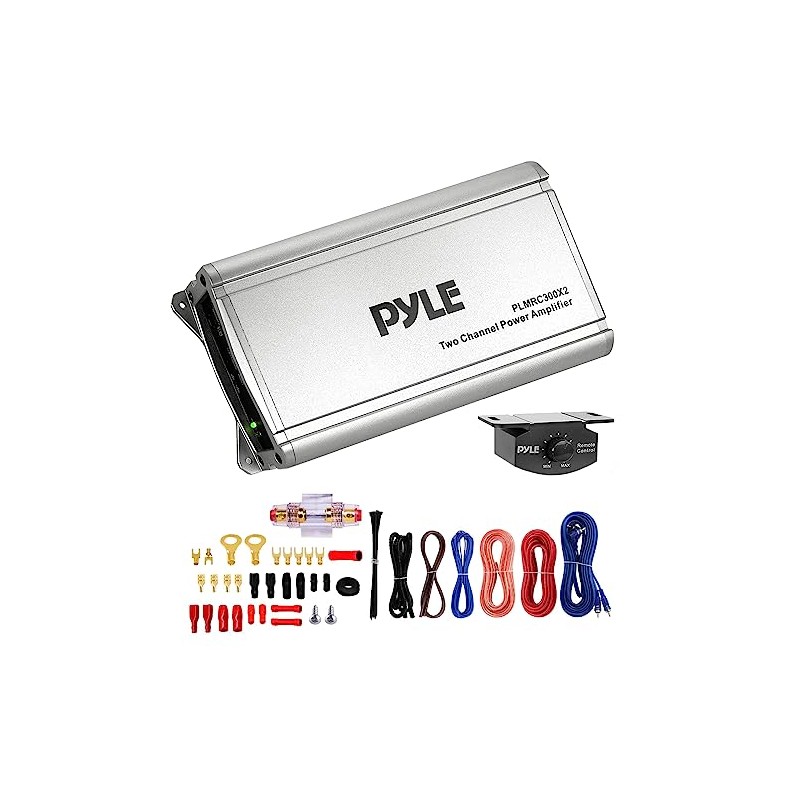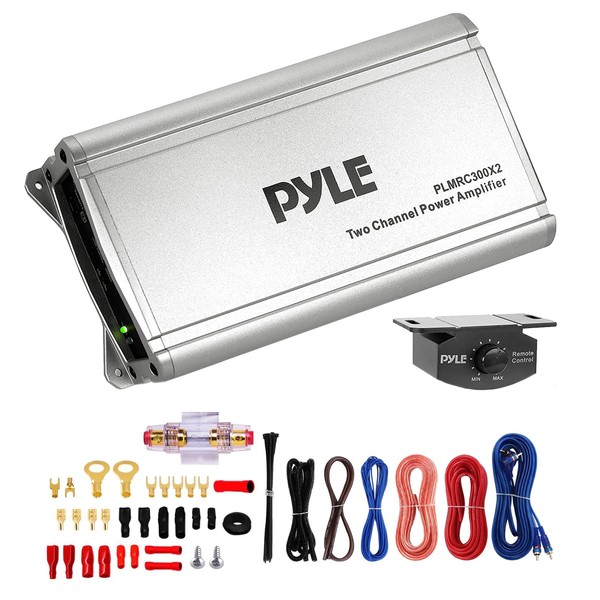 - PACKAGE BUNDLE INCLUDES: 1x Pyle PLMRC300X2 600 Watt 2-Channel Class D Marine Amplifier, 1x 8 Gauge Wiring Installation Kit