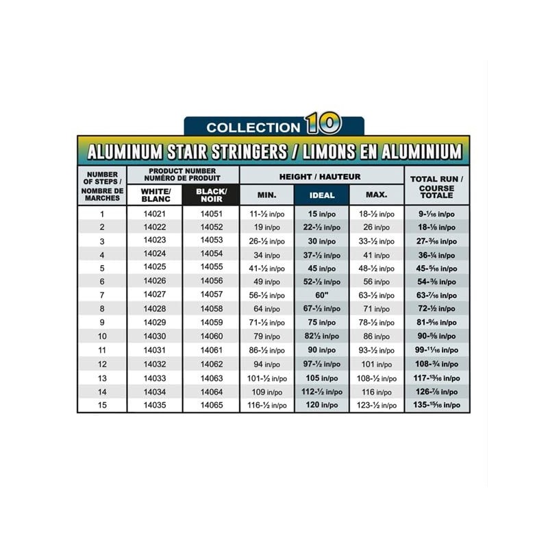 - Collection 10 (7 ½ in rise and a run of 9 1/16 in, tread of 9 ¾ in-10 in)