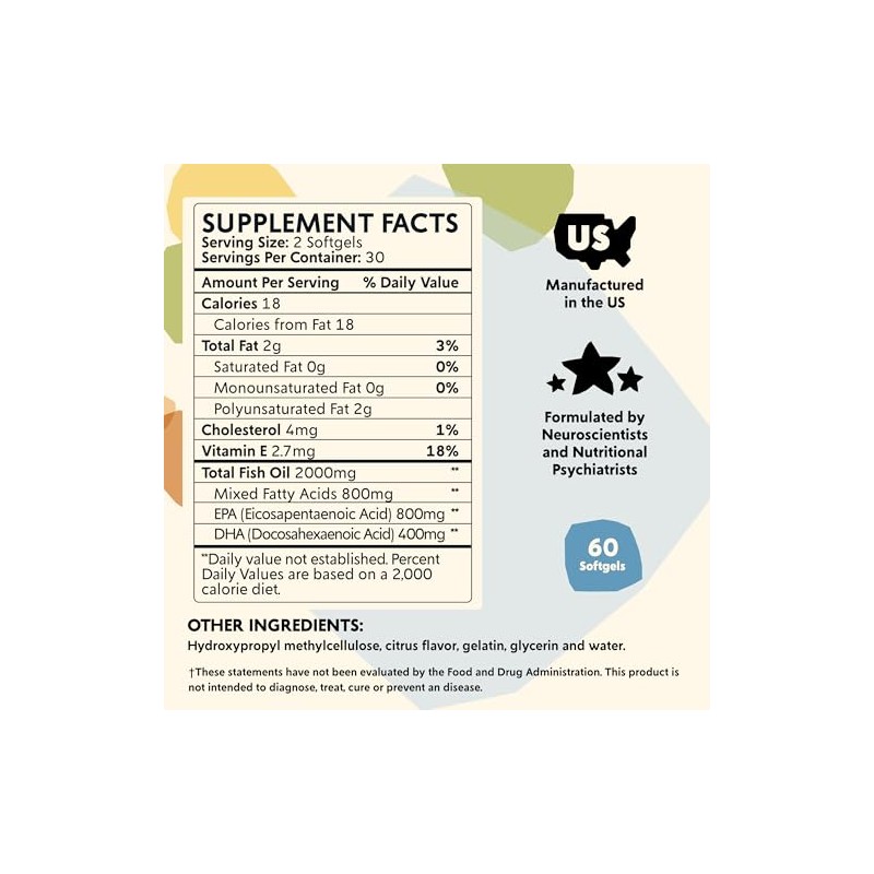 PYM Health Pym Mood Omegas Para Apoyar El Bienestar Emocional, 60 Unidades - cidos Grasos Omega-3, Dha, Epa Y Vitamina E Sin Omg, Sin Gluten, Sin...