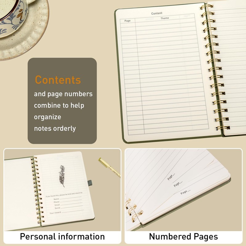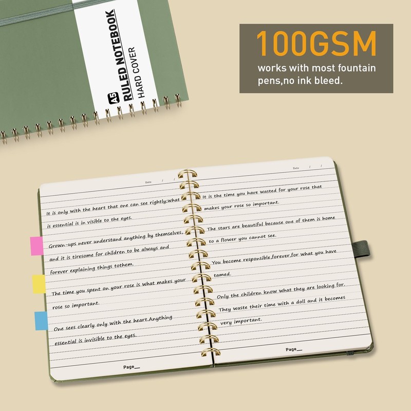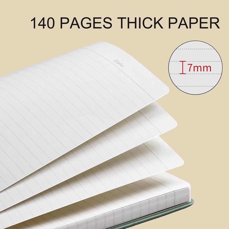• Premium Lined Paper: The notebook uses 100 GSM thickened paper, preventing ink bleed-through and smudging. It fits ballpoints, gels, fountain pens, etc. Each page has a date header for easy dating, plus designed lost pages.
