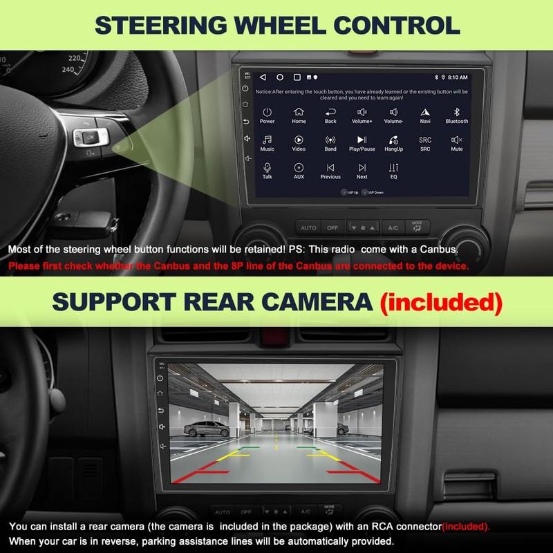 - ✅Android 13 Touchscreen for HONDA CRV (2007-2011) : Equipped with the latest Android 13 operating system that guarantees maximum security, customization, and compatibility with over 3 million apps on Google Play. The combination of 2GBand 64GB allows you to run multiple apps simultaneously without lag. Bluetooth + Wi-Fi: Stream music via Bluetooth while downloading updates via Wi-Fi. Transform your dashboard into a smart entertainment center!