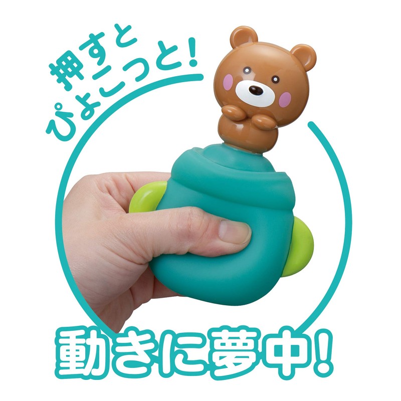 - 押すとぴょこっとでてくるクマさんの動きに夢中!