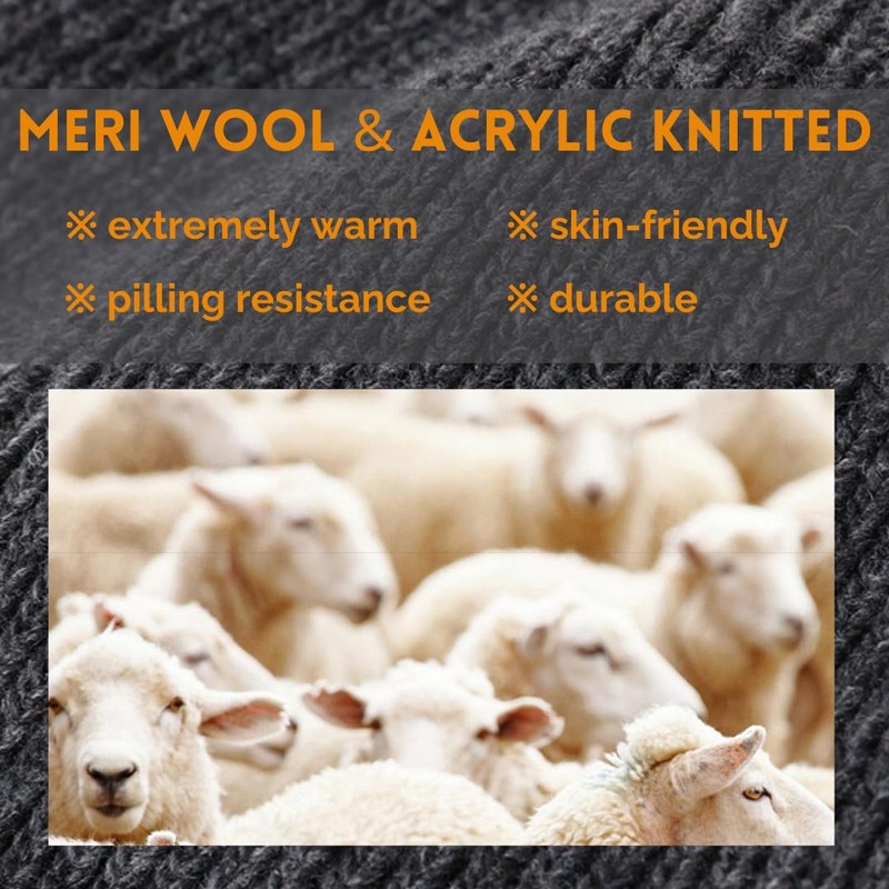 - PREMIUM MERINO WOOL This beanie is made of 30% merino wool and 70% acrylic, which provides a perfect combination of warmth, softness and durability. Ideal for men and women looking for a comfortable winter hat.