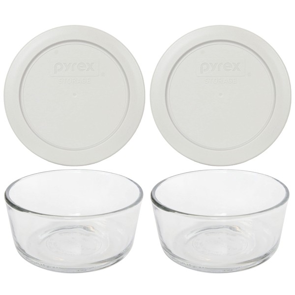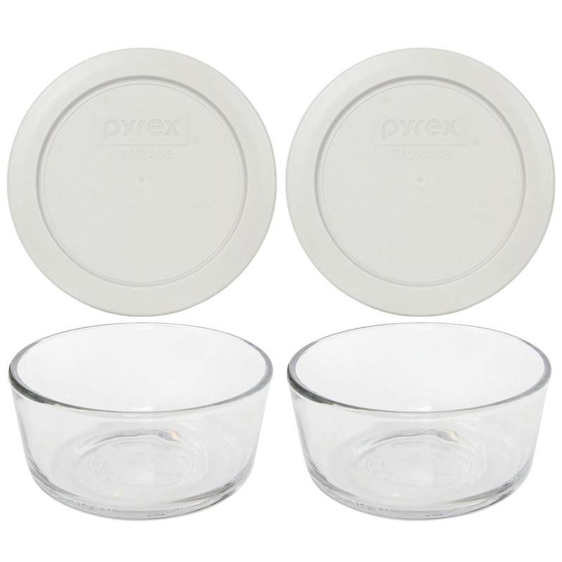 - Includes : Pyrex (2) 7200 2 Cup Glass Bowls & (2) 7200-PC Sleek Silver Lids