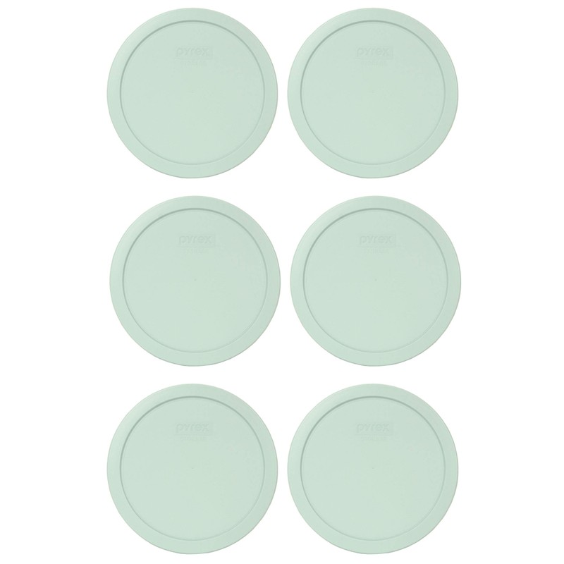 Pyrex 7402-PC Muddy Aqua Round Plastic Food Storage Replacement Lids - 6 Pack