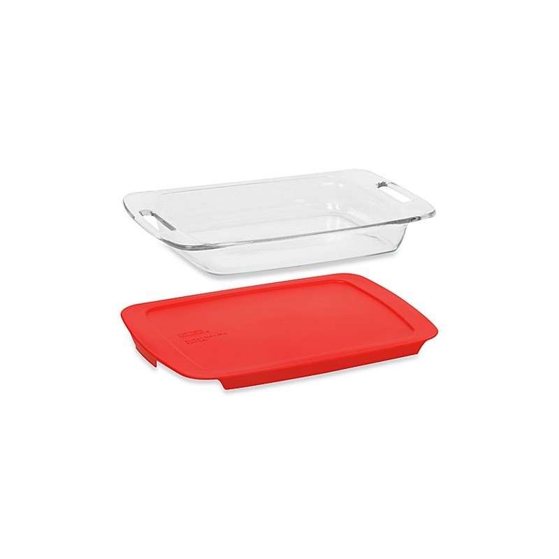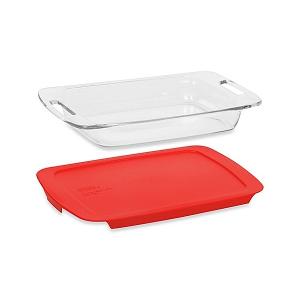 Pyrex Easy Grab 3-Quart Oblong Glass Baking Dish with Red Plastic Cover