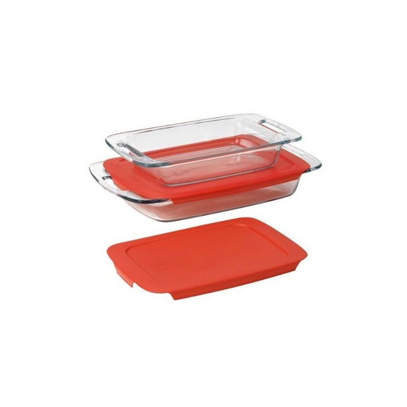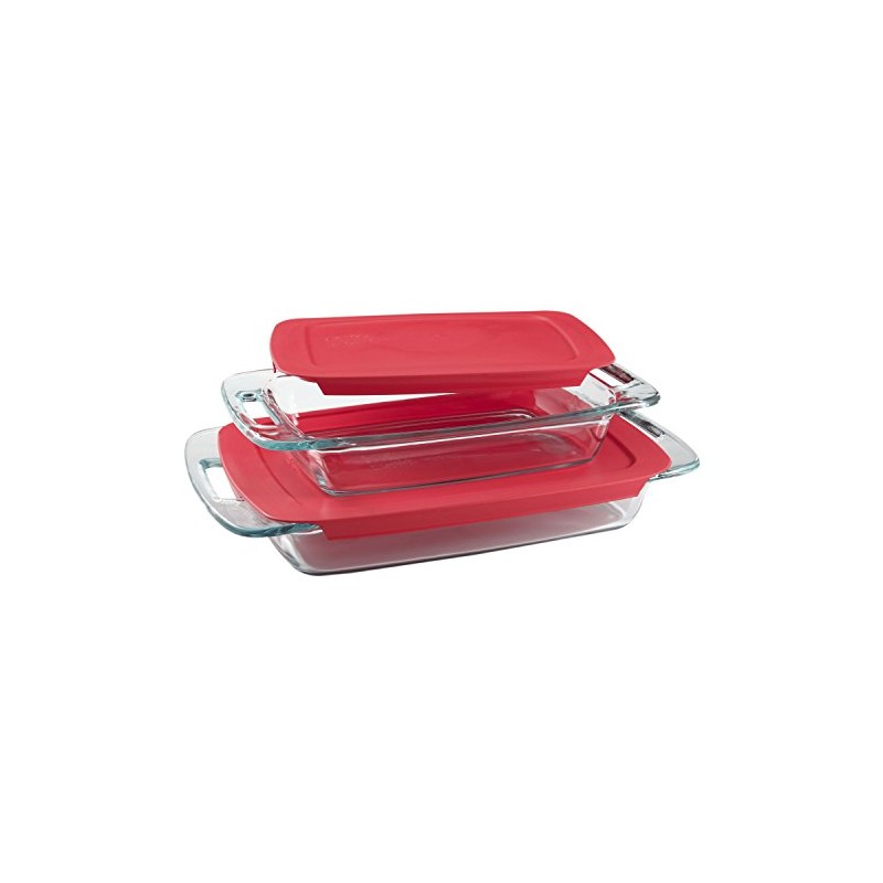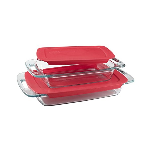 Pyrex Easy Grab 4-Piece Value Pack, includes 1-ea 3-qt Oblong, 2-qtOblong, Red Plastic Covers
