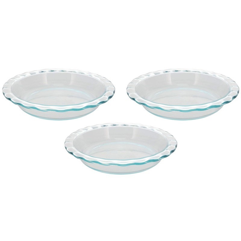 Pyrex Easy Grab 9.5" Glass Pie Plate (Pack of 3) Made in the USA
