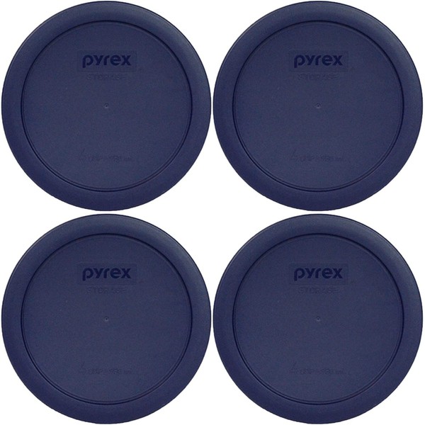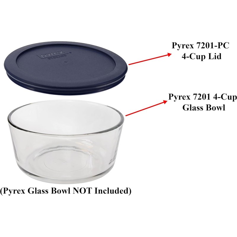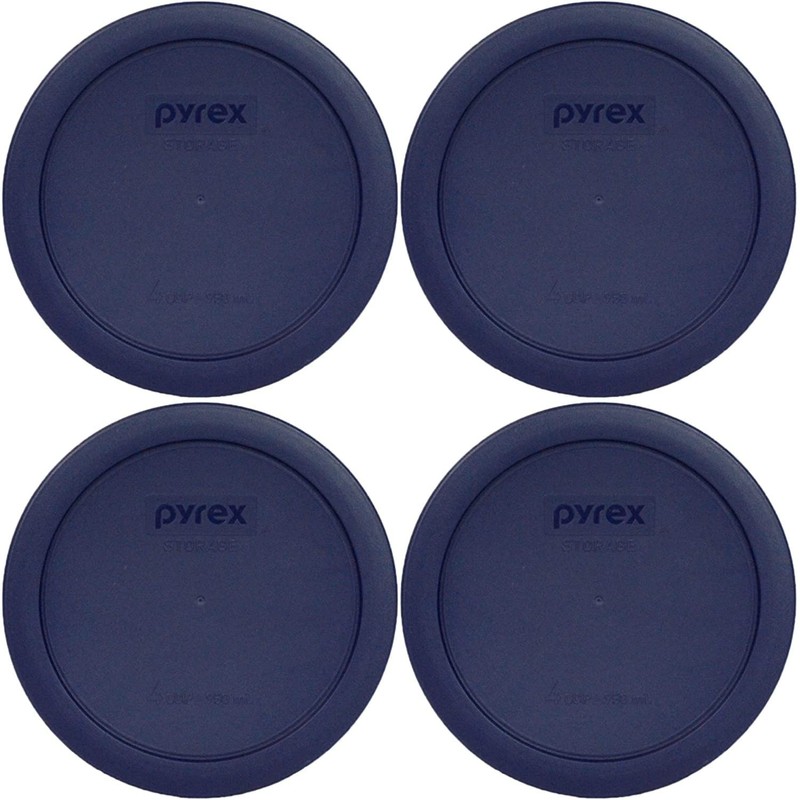 Pyrex Bundle - 4 Items: 7201-PC 4-Cup Blue Round Plastic Lids - Original Genuine Pyrex - Made In The USA