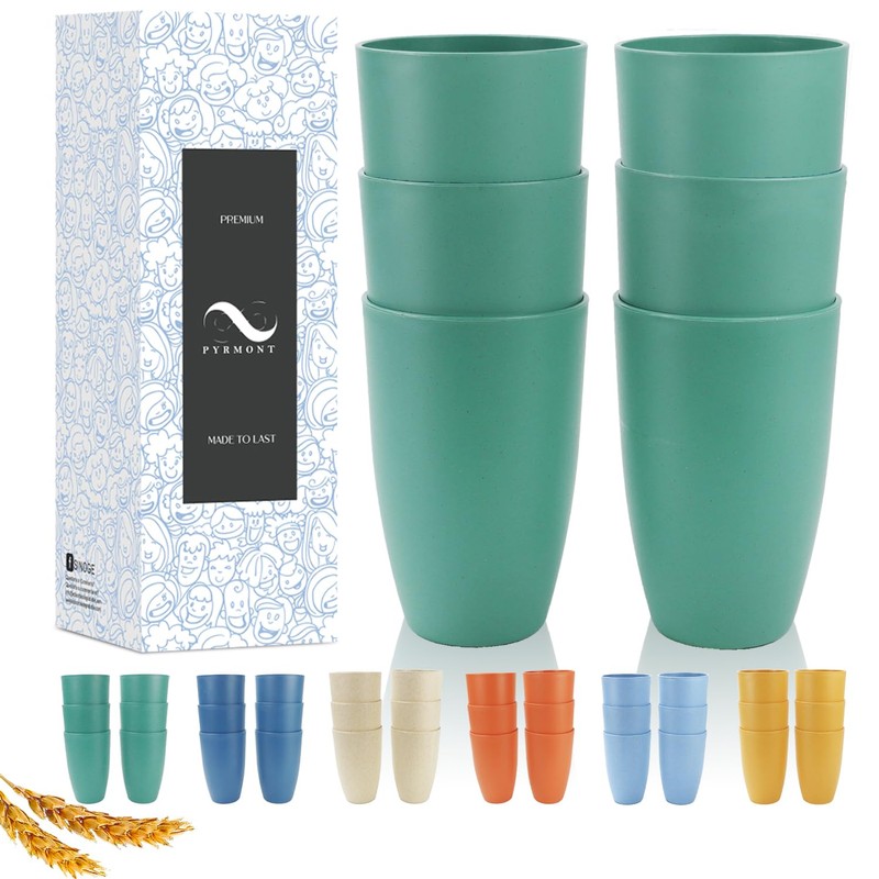 PYRMONT Wheat Straw Cups - 20oz Unbreakable Kid Tumbler Set of 6, Reusable Water Cups - Dishwasher & Microwave Safe, BPA Free
