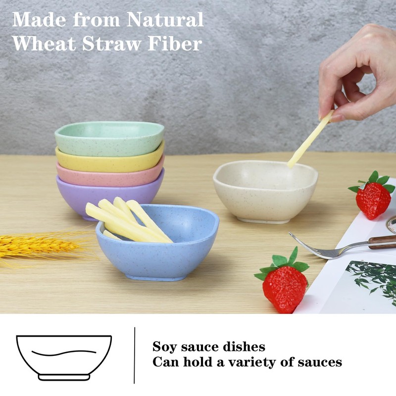 - 𝐖𝐡𝐞𝐚𝐭 𝐒𝐭𝐫𝐚𝐰 𝐅𝐢𝐛𝐞𝐫 - Our dipping bowls made of high quality food grade wheat straw materials,the material is non-toxic,odorless which makes friendly, healthy pinch bowls around your family on a daily basis.It's light weight and unbreakable, also easy to carry out while camping.